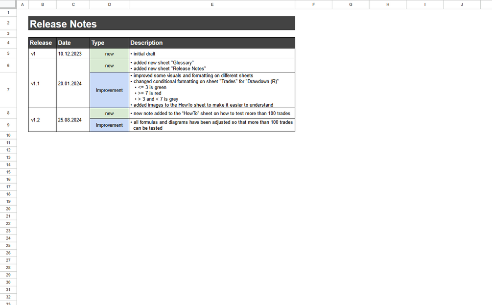 After purchase, you will receive immediate access to the Backtesting Template. To use the spreadsheet for your own backtests, simply create a copy by clicking File | Make a copy in the menu. Alternatively, you will also find a How-To guide in the table. Then you can immediately use the template in your Google Drive and customize it as desired.