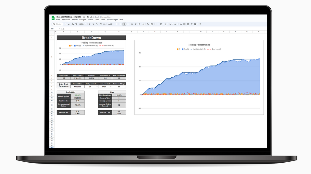 Gain Access to my Backtesting Template incl. Breakdown for 100 Trades